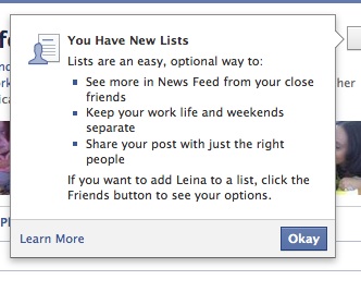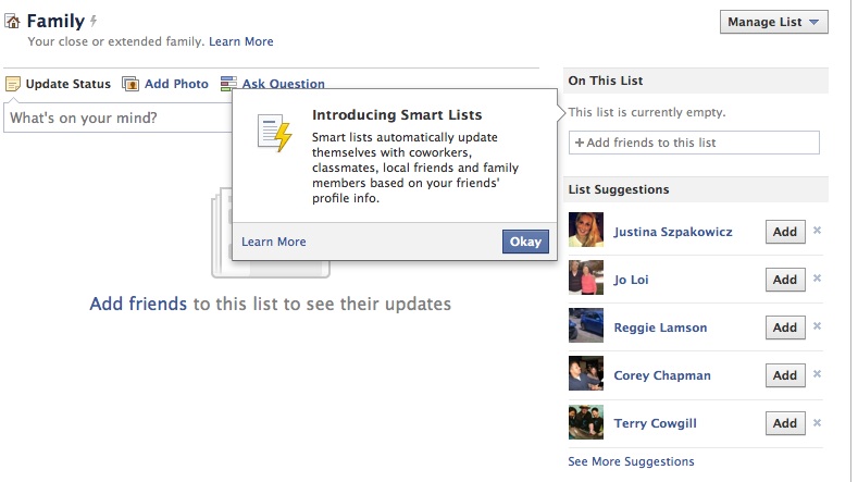 Now dubbed “Smart Lists,” they take information from your friends’ profiles and adds them into your New Lists for you. So your family, college classmates, coworkers and so on will be auto-populated to your new lists.